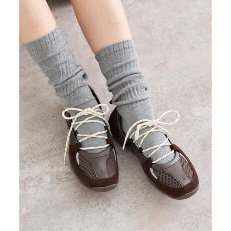 異素材の組み合わせが目を引く、洗練されたデザインのスニーカー。