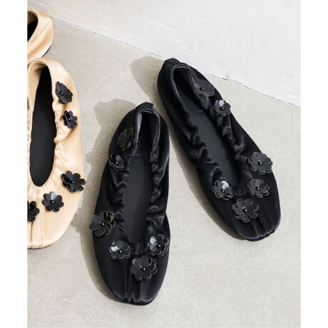 立体感のあるフラワーモチーフをあしらい、足元にさりげない存在感をプラスした一足。