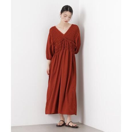 シャーリングデザインが魅力の大人ワンピース