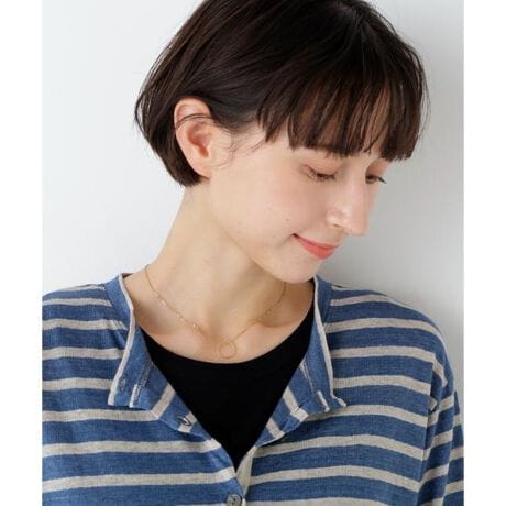 柄入りのリングモチーフをぶら下げた華奢なペンダントです。