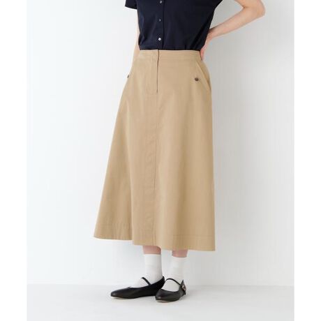ポケットディテールのデザインをポイントにしたチノフレアースカートです。素材感を活かしたシンプルなスカートです。後ろウェストはゴムを入れているのではき心地もイージーなスカートです。