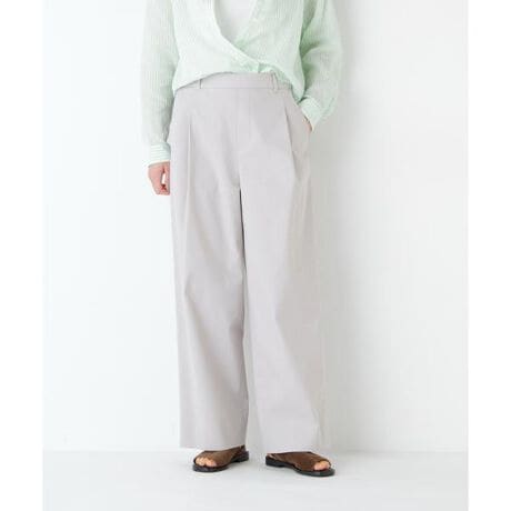 ワンタックのセミワイドパンツを後ろウエストゴムで仕上げた履き心地がイージーなシンプルパンツです。