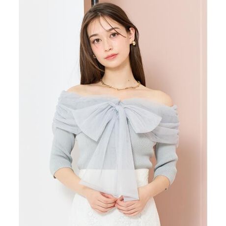 繊細なレイヤードが映えるリボンチュールレイヤードリブニット【Design】・リブニットにチュールを重ねたレイヤードデザインが目を惹くトップス。・ふんわりとしたチュールとリボンディテールが、フェミニンな印象をプラスします◎・程よくフィット感のあるリブシルエットで、すっきりと女性らしいラインに♪・伸縮性のある襟ぐりで、オフショルダーとしても心地よくフィットします◎・前後どちらでも着用できる2WAYデザインで、スタイリングの幅が広がるのも魅力♪・スカートにもパンツにも合わせやすく、幅広いスタイリングで活躍します!・被り仕様【Fabric】・伸縮性のあるリブニット素材で、快適な着心地に。・やわらかく肌なじみの良い風合いで、ストレスフリーに着用いただけます。・ホワイト、イエロー、サックス、ブラックの4色展開となります。【Care】ドライクリーニング