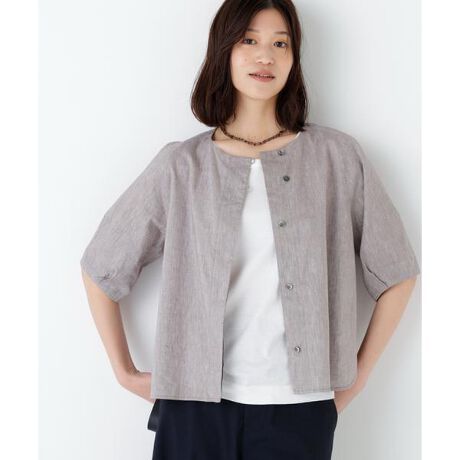 リネンコットンシャンブレータックスリーブブラウス