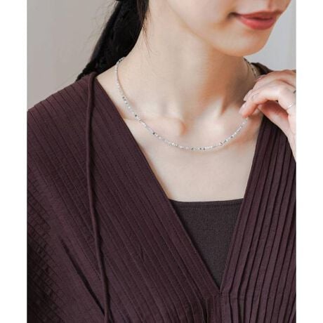 カットを施した小粒の天然石ビーズがキラキラと輝くショートネックレス。