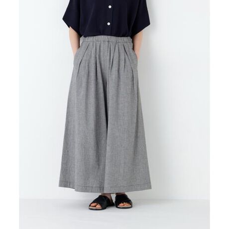 やわらかい生地感を活かし、タックを多めに取ったスカーチョ。清涼感のある履き心地抜群な夏らしい爽やかボトムです。ウエストがオールゴムで履きやすいデザインです。