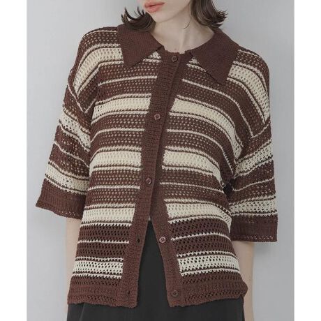 清涼感のあるメッシュ編みのニットシャツ。