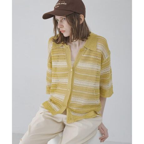 清涼感のあるメッシュ編みのニットシャツ。