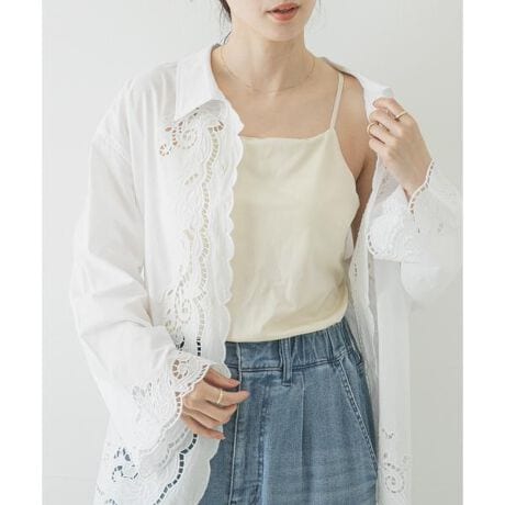 カップ付きなので、インナーのラインを気にせず一枚でさらりと纏えるのも嬉しいポイント。ジャケットやシャツのインナーとしても馴染みが良く、光沢感を活かしたきれいめスタイルから、カジュアルなアイテムとのミックススタイルまで、幅広い着こなしのベースとして活躍します。