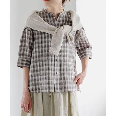 適度にゆるめに設定したサイズ感がラフな印象をプラスし、こなれ感溢れるバンドカラーと長くしすぎない着丈、裾のラウンドヘムを採用。