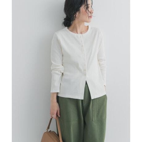 シンプルなカットカーディガンを、細目のリブとコンパクトなシルエットでトレンド感のあるデザインに仕上げました。