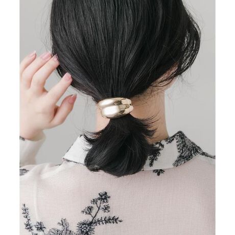 【結び目に引っ掛けるだけ。ぷっくりメタルのニュアンスヘアカフ】
