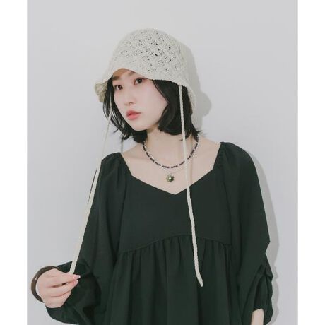 長めの紐はそのまま垂らしてルーズさを楽しんだり、あごの下で結んで可愛らしく決めたりと、その日の気分でアレンジをお楽しみいただけます。