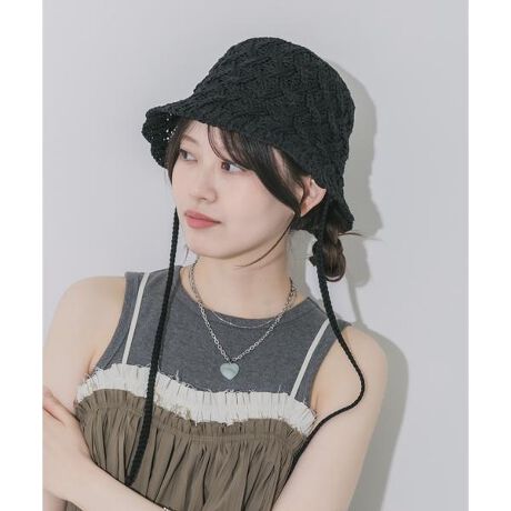 ●サイドから垂れる長めの紐がお顔まわりにニュアンスをプラス