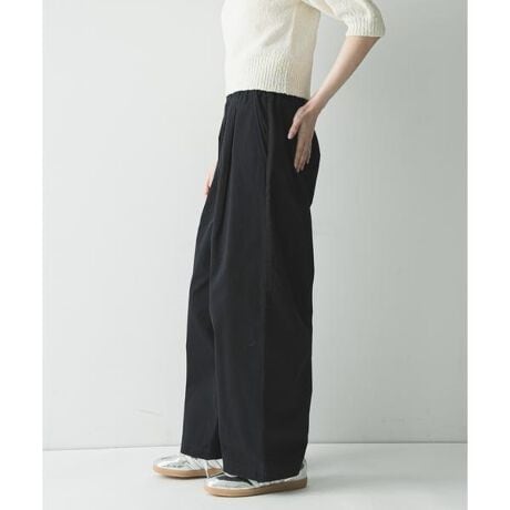 ウエストは総ゴムのギャザー仕様でリラクシーな穿き心地ながら、フロントはファスナー開きにすることで、トップスをインした際もすっきりと上品に決まるデザインに。内側の紐でサイズ調整も可能です。