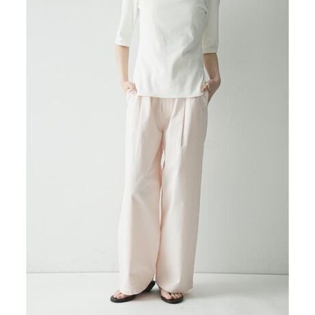 ウエストは総ゴムのギャザー仕様でリラクシーな穿き心地ながら、フロントはファスナー開きにすることで、トップスをインした際もすっきりと上品に決まるデザインに。内側の紐でサイズ調整も可能です。