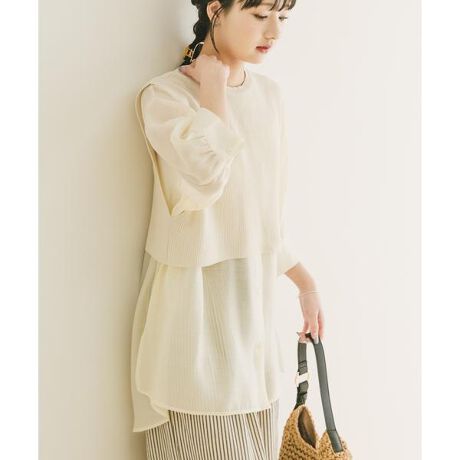 シャツとニットベストを重ねたようなドッキングデザインで、着るだけでバランスの取れたレイヤードスタイルが完成する一枚。丈感やシルエットが計算されているため、忙しい朝でも迷わずコーデが決まります。異素材のコントラストがほどよい立体感を生み、シンプルながらも着映えするデザインに。コンパクトなベストと軽やかなシャツの組み合わせで、すっきりとした印象に仕上がります。デニムやスラックスと合わせてカジュアルにもきれいめにも着まわせる、デイリーに頼れるアイテムです。【2026 Spring/Summer】【26SS】