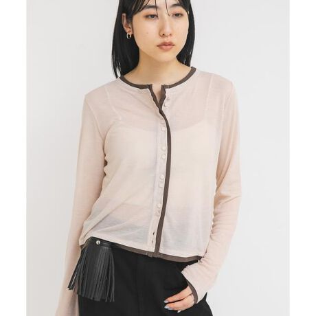 肌触りの良いリブを使用したカーディガン。身頃は程よく透け感があり、日除けや冷房対策にぴったりなアイテムです。レイヤード風なデザインは、ベーシックなボトムと合わせるだけでこなれ感を演出します。