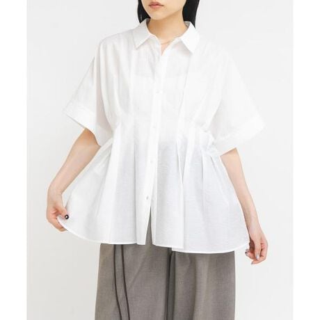 ウエストに施したタックが立体的なシルエットを演出するブラウス。程よくゆったりとしたドルマンデザインは抜け感を出しつつ、腰回りはすっきりとしているのでスタイルアップが叶います。普段使いはもちろん、オフィススタイルにもおすすめな1着です。