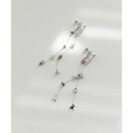 【不揃いなビーズが耳元で踊る、シアーカラーの2連チェーン】