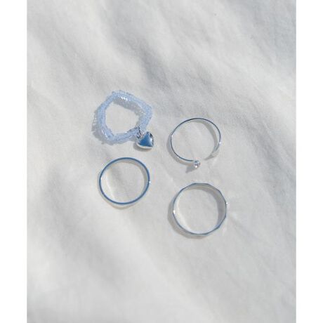 ちょこんとついたミニハートがポイントの、遊び心たっぷりなリングセット。ビーズリングは涼しげな素材感で、手元をぱっと明るく見せてくれます。どれも華奢なラインなので、手持ちのリングと組み合わせたりその日の気分でつける数を変えたりと、アレンジも自由自在。つけるだけでワクワクするような、毎日のコーディネートが楽しくなるセットアイテムです。