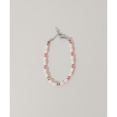 ●まろやかな質感のオーバルビーズとパキッとした赤を組み合わせたデザイン