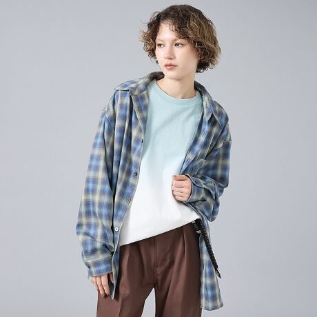 グラデーションのように色が溶け合うオンブレチェック柄が印象的なシャツ。落ち着いたトーンでまとめた配色は、カジュアルながらも大人っぽい雰囲気を演出します。ややゆとりのあるシルエットで、織りとしても使いやすく、1枚ではもちろんレイヤードスタイルにも活躍。胸元のフラップポケットがさりげないアクセントになり、シンプルなコーディネートに表情を加えてくれます。