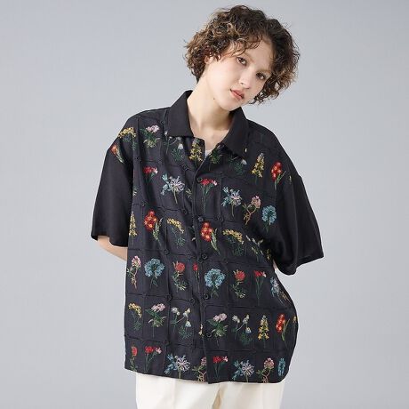 アンティーク調の花柄刺繍を大胆にあしらいながらも、落ち着いた配色とリラックスシルエットで、デイリーに取り入れやすいバランスに仕上げました。1枚で存在感を出したい時や、いつものスタイルにひとさじの遊び心を加えたい時におすすめです。