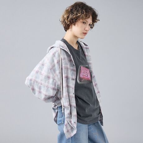 トレンドのフード型のチェックシャツ。落ち着いた配色とリラックスシルエットで、軽快にレイヤースタイルをお楽しみいただける一枚に仕上げました。1枚で存在感を出したい時や、いつものスタイルにひとさじの遊び心を加えたい時におすすめです。ボタンを閉めて着るのは勿論、ボタンを開けて着るのもおすすめ。ドロップショルダーでお洒落に着ることができます。