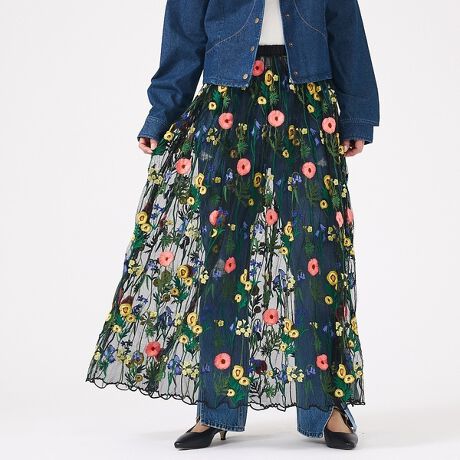柔らかいナイロンチュールに総刺繍を施したスカート。
