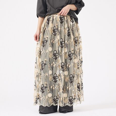 柔らかいナイロンチュールに総刺繍を施したスカート。