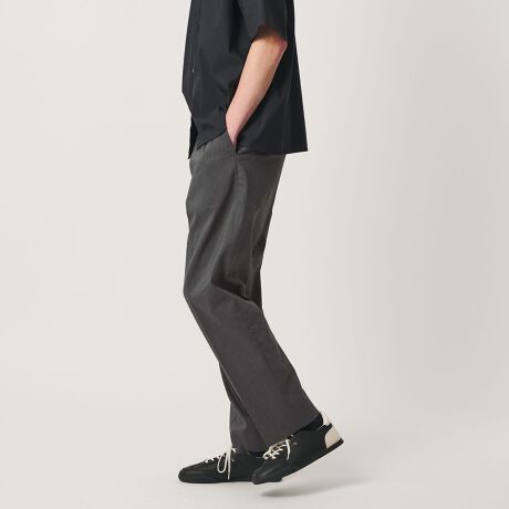 リネンならではの節感が程よいカジュアルさを演出しつつ、センターにクリースを入れることで、すっきりとした“きちんと感”のある印象に仕上げています。