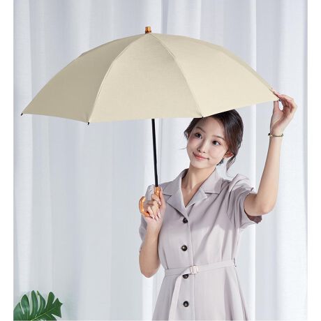 【輝きまとう2段式日傘】光を受けるたびに輝くシルキー生地×遮光率100%の「2段式日傘シルキーラックス」【2WAYで使い勝手抜群】長傘×折りたたみの2段式仕様。急ぎの移動はそのまま、室内ではコンパクトに収納可能◎【シルキーな輝きの質感】光の角度で表情が変わるシルク風の艶感生地。上品でエレガントな雰囲気を演出。【完全遮光で肌を守る機能】遮光率100%・UVカット100%・UPF50+・遮熱効果を証明済みの最高ランク生地使用!【ラミネート加工の高耐久】フィルム接着のラミネート加工で、UVカット効果が長期にわたり持続する丈夫な仕様〇【バンブーハンドルの高級感】天然竹を焼き加工した持ち手は握りやすく、変形しずらく丈夫で汚れもつきにくい!※直線の竹を曲げて加工しているため、表面が引っ張られることにより、皺や切れ目が生じる場合がございます。天然素材ならではの1本ごとに異なる形や節の表情をお楽しみください。【W遮熱で涼しさキープ】上からの直射UV+地面からの照り返しをダブルカット。約18.6℃の温度上昇を抑える。【ダブルボタンで手間いらず】2カ所のボタンで急いでいる時はふわっと巻くだけ、帰宅後はきちんと留め直せる仕様。【カバンに掛けられる収納】ナスカン付きストラップでカバンの取っ手に取り付け可能で持ち歩きをスマートに♪