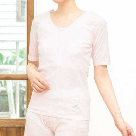 アウトステッチ製法で、可能な限り肌に縫い目や縫い代があたらないように仕立て上げられた、着心地重視でシンプルなデザインです。