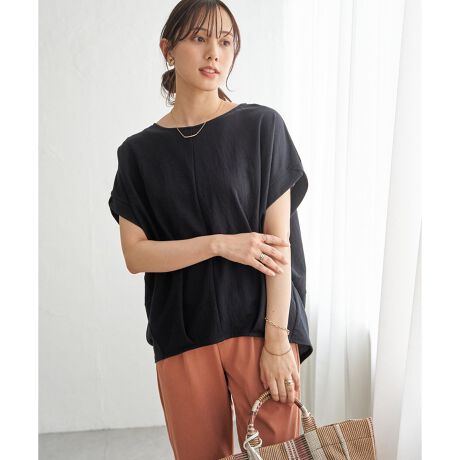 気になる体型をカバーしてくれるシルエットと、ほどよく隠れる袖丈で二の腕の細見え効果も期待できます。