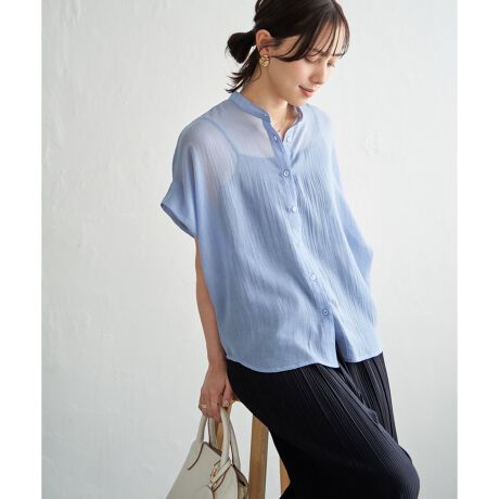 羽織りでも使いやすいバンドカラーでコーディネートの幅が広がるアイテムです。