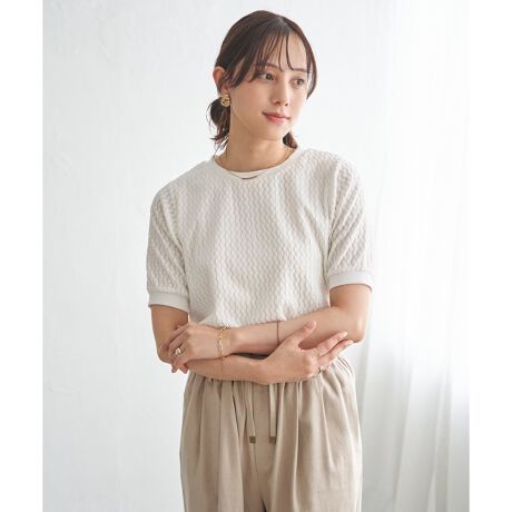 ・凹凸感のある素材で、シワが気になりにくく、デイリーに着やすいトップス。