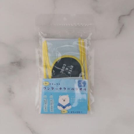 両端にくっつく生地を使っているのでワンタッチで装着できるクールタオルです。
