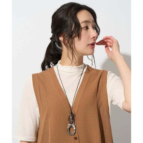 ・オーバル型のウッドパーツとメタルパーツを組み合わせ、シンプルな装いにも華やかをプラスしてくれます。