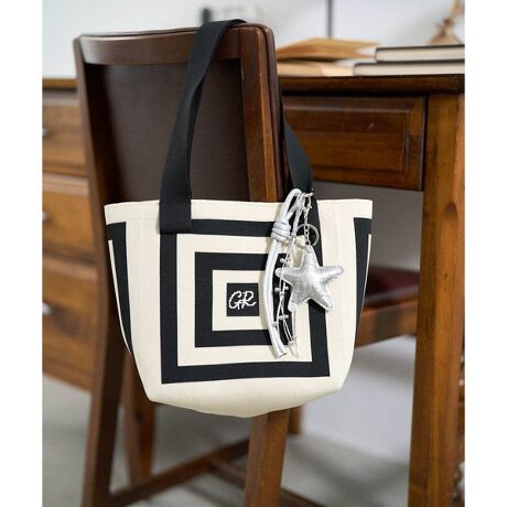 [型番:PG5GD27090]■デザイン ・GRのワンポイントのロゴ入りニットトートバッグです。 ・モダンな幾何柄のニットトートバッグは大胆な柄が目を引き、コーディネートのアクセントになってくれます。 ・ほど良い大きさでマチ付きなのでとても使い勝手が良いサイズ感です。 ・内側にはスマホやパスケースを入れられる吊りポケット付きです。・ショルダー幅も広めなので肩や腕への負担もなく楽に使っていただけます。