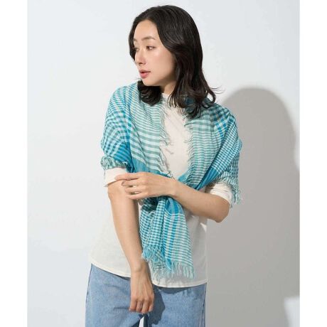 [型番:PG3GD24090]【デザイン】・ポップなカラーのチェック柄ストールです。・縦横に麻と綿を織り込みきれいなチェック柄を表現しています。・薄手で軽いので襟元のアクセントや軽く羽織るのもおすすめです。・シンプルなTシャツ合わせでコーディネートのアクセントにぴったりなアイテムです。