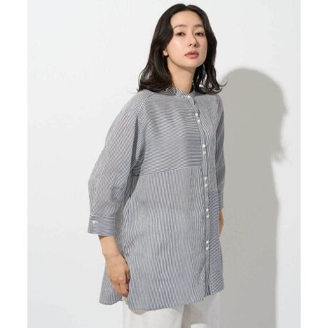 ・前見頃を大胆にタテヨコ切り替えを入れた個性的なロングブラウスです。