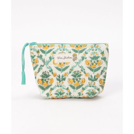 インドの伝統技法であるブロックプリントを使用したキルティングポーチ。