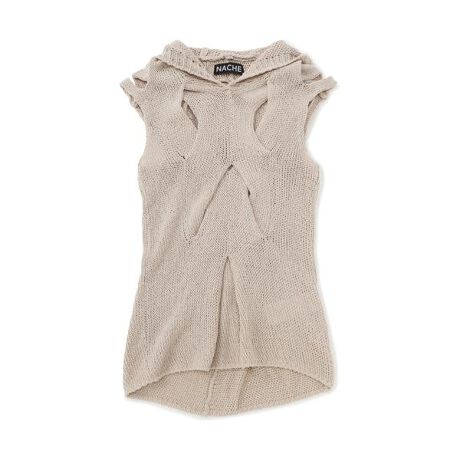 独特な編地と立体的なドレープが印象的な「OUT KNITTED SLEEVELESS」。