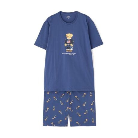 トップスと同様のコアフラッグPOLOベアをオールオーバープリントしたデザインで、両サイドにポケット付き。