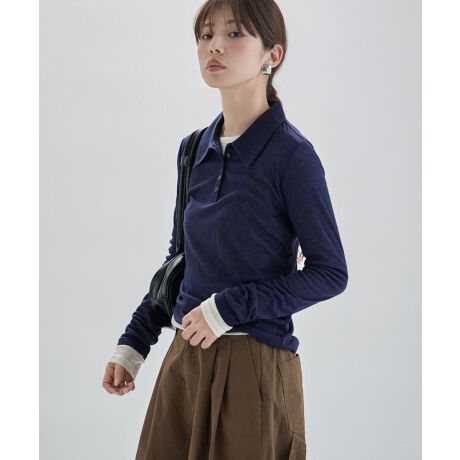 同素材のUネックロンT(et0420008803)を色違いで重ねるとトレンド感UP。