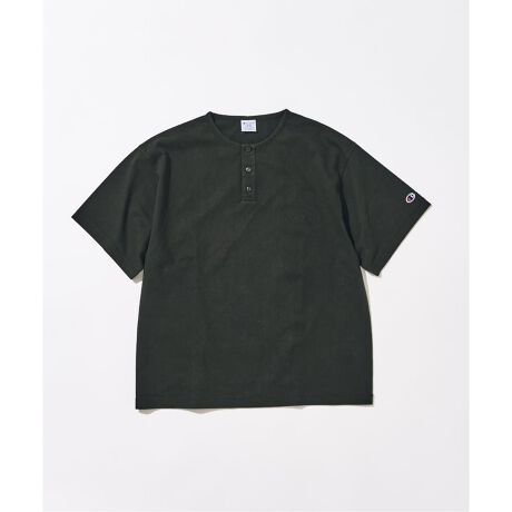 CHAMPIONに別注した、ヘンリーネックTシャツ。ブリーチウォッシュ加工を施し、ヴィンテージライクな風合いと奥行きのある表情に仕上げています。