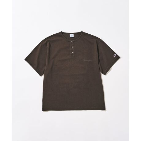CHAMPIONに別注した、ヘンリーネックTシャツ。ブリーチウォッシュ加工を施し、ヴィンテージライクな風合いと奥行きのある表情に仕上げています。