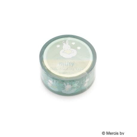 自由に過ごすミッフィーとオーロラ箔押しを施した、モチーフが華やかなクリア素材のマスキングテープです。
