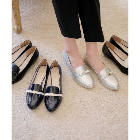 トレンドを感じるローファーデザインの晴雨兼用パンプスは、リッチな表情と撥水・防水効果をあわせもつアイテム。エナメルやシャイニーなフェイクレザーなど光沢感のある素材を使用したアッパーに、メタルアクセントを利かせたナローリボンディテールをプラス。スタイリッシュなシルエットのフォルムは上品なニュアンスとエレガントさも兼ね備え、カジュアルになりがちなレインアイテムをリュクスでほんのりフェミニンにアップデートしています。オーセンティックなデザインなのでスカートはもちろんパンツスタイルとも好相性。足入れが良い木型を使用し、地面との接地面の多いウェッジソールにすることで、ホールド感・安定感もキープ。さらに中の縫い目に止水テープを付けて防水性をアップ、滑りにくい靴底にもこだわりました。程よいヒールや中底のクッションは歩きやすく疲れにくい仕様。通勤でも活躍する大人できれい目なディテールが、雨の日を素敵に彩ってくれます。